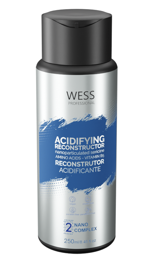 A WESS é a única marca que possui um acidificante nano particulado que consegue alcançar até o córtex do cabelo.